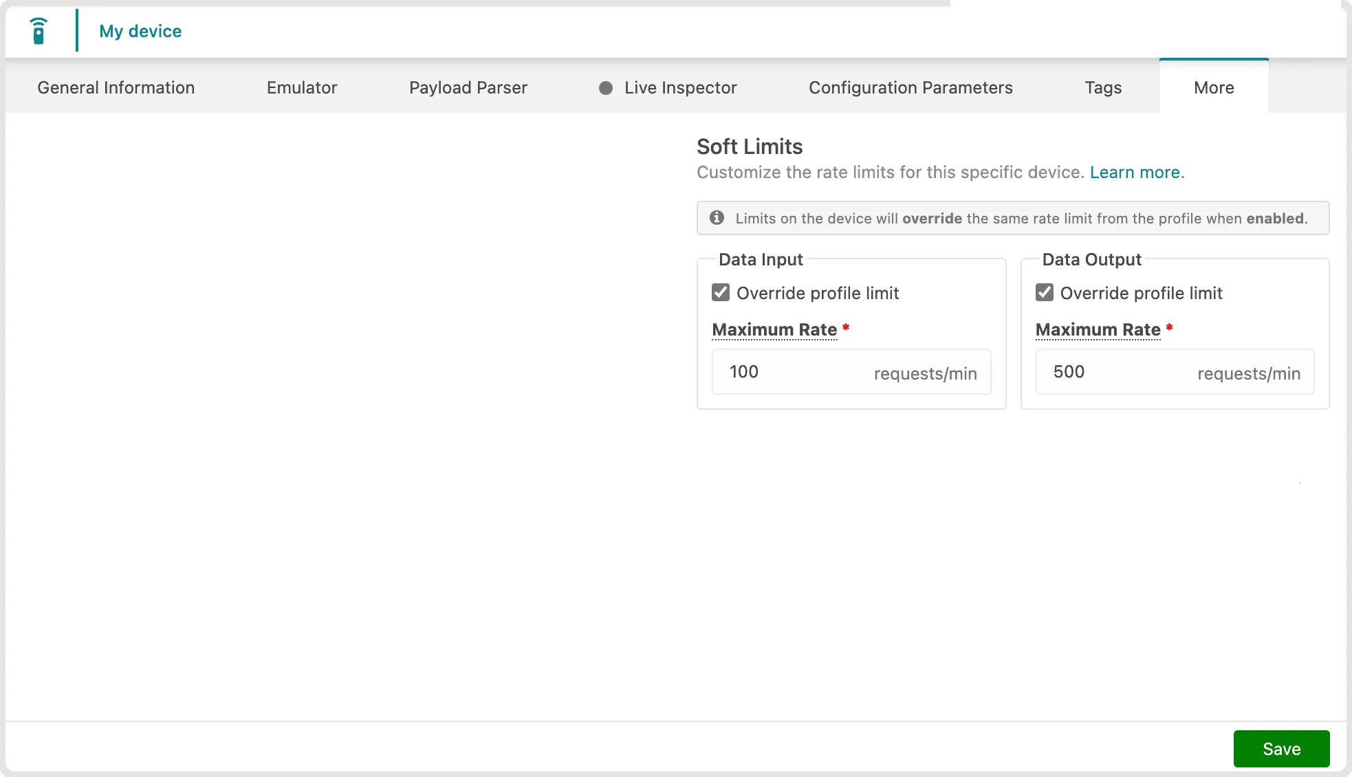 Device Soft Limits: Navigate to the ‘More’ tab on the device page to configure soft limits for individual devices.